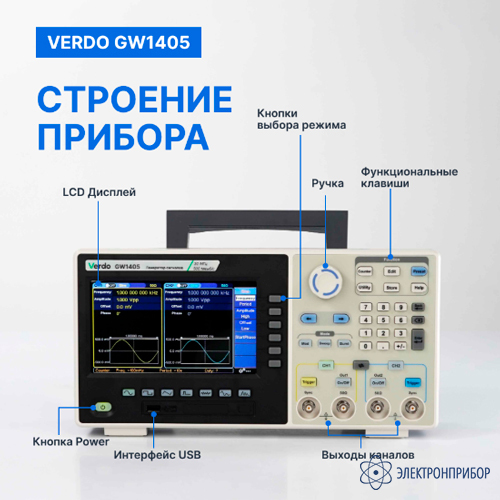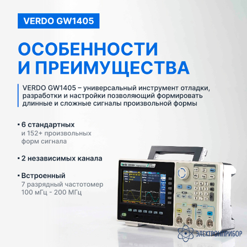 VERDO GW1405 — генератор сигналов 100 МГц, 500 Мвыб/с