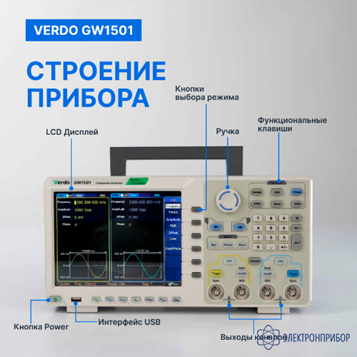 Назначение генератора сигналов 80 МГц, 1250 Мвыб/с VERDO GW1501: