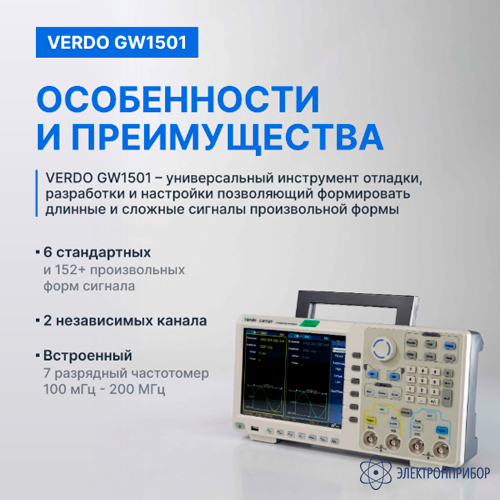 Особенности генератора сигналов 80 МГц, 1250 Мвыб/с VERDO GW1501: