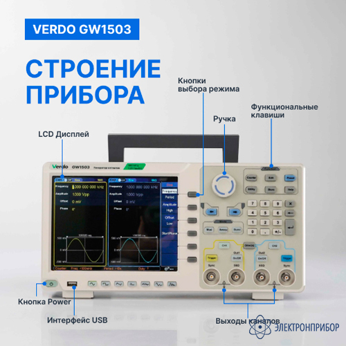 Технические характеристики генератора сигналов 160 МГц, 1250 Мвыб/с VERDO GW1503: