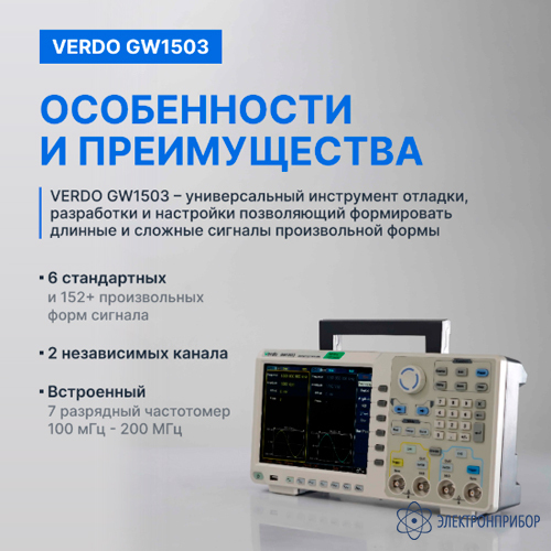 Особенности генератора сигналов 160 МГц, 1250 Мвыб/с VERDO GW1503: