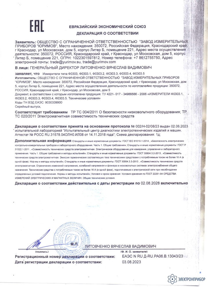 Измеритель - регулятор технологический двухканальный. Прибор щитовой цифровой (амперметр, вольтметр) постоянного тока, узкопрофильный, с цифровой или комбинированной индикацией. Коммутирующее устройство измерителя-регулятора Ф0303.2 состоит из двух переключающих электромагнитных реле, каждое из которых программно назначается на любой из каналов измерения.