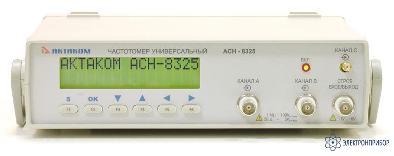 Универсальный частотомер АСН-8325, предназначен для измерения частоты, периода, длительности импульса и скважности сигнала. Прибор обеспечивает возможность выполнения математических операций с полученными данными и статистическую обработку результатов измерений. Наличие интерфейса USB / LAN позволяет подключать прибор к персональному компьютеру, что обеспечивает возможность удаленного управления прибором в системах автоматизированных измерений, а также обработку и архивирование результатов измерений. Старшие модели обеспечивают оценку мощности входного сигнала.
