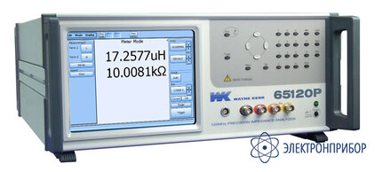 Прецизионный ВЧ измеритель WK 65120Р: Диапазон частот 20 Гц - 120 МГц (разрешение 0,01 мГц); Базовая погрешность 0,05 %; Сопротивление (R, Z) 0,01 мОм … 2 ГОм; Емкость 1фФ … 1Ф; Индуктивность 0,1 нГн … 2 кГн; Фазовый сдвиг -180 … +180o; Добротность (Q) 0,00001 … 1000; Тангенс угла потерь (D) 0,00001 … 1000; Реактивное сопротивление (X), комплексная проводимость Y (адмитанс), проводимость (G), реактивная проводимость (B); Интерфейс USB (Подключение клавиатуры, мыши, внешних носителей), VGA, LAN, GPIB; Запись/считывание профилей (20 ячеек); TFT сенсорный дисплей 640 х 480; Масса 14,5 кг.