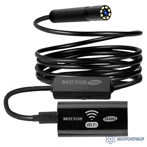 МЕГЕОН 333201 - это видеоскоп с беспроводной передачей данных при помощи Wi-Fi. Прибор удобен своей возможностью работать с большим количеством мобильных средств связи. Теперь размер изображения зависит только от диагонали экрана личного смартфона или планшета. Программное обеспечение позволяет эксплуатировать совместно с операционными системами на базе Android, IOS и Windows. Необходимое приложение доступно для скачивания без ограничения в Play Market, APP Store и на сайте компании. Для работы с персональным компьютером требуется обязательное наличие функции Wi-Fi. Передатчик эндоскопа обеспечивает связь устройств на расстоянии от 5 до 30 метров. Видеонаблюдение обеспечивается пыле- влагозащищённой камерой диаметром 8 мм. Яркая светодиодная подсветка высокой интенсивности гарантирует прекрасную видимость в полном отсутствии освещения.