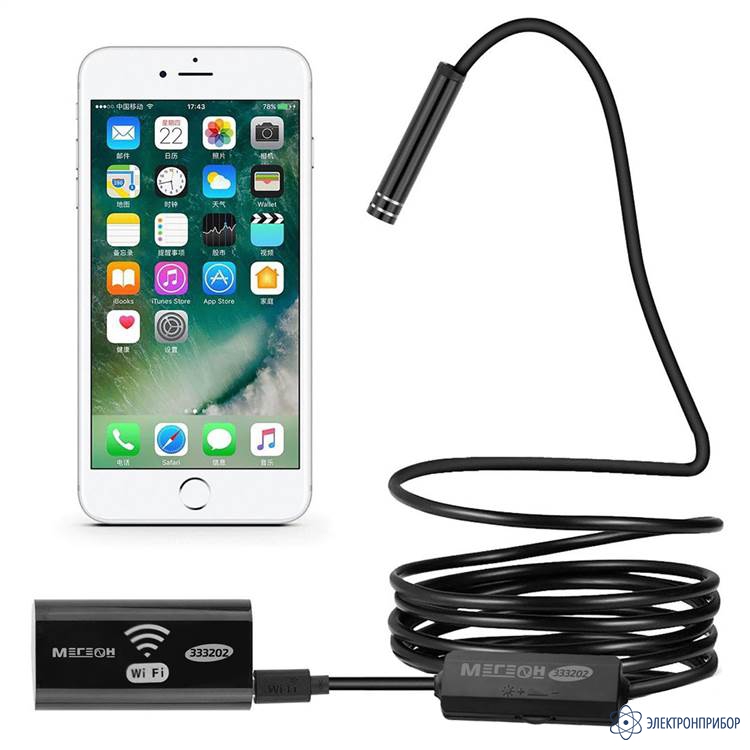 МЕГЕОН 333202 - это видеоскоп с беспроводной передачей данных при помощи Wi-Fi. Прибор удобен своей возможностью работать с большим количеством мобильных средств связи. Теперь размер изображения зависит только от диагонали экрана личного смартфона или планшета. Программное обеспечение позволяет эксплуатировать совместно с операционными системами на базе Android, IOS и Windows. Необходимое приложение доступно для скачивания без ограничения в Play Market, APP Store и на сайте компании.