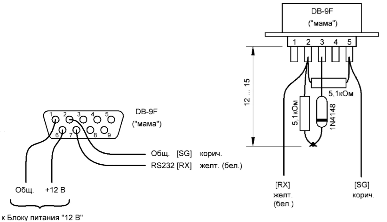 12 В с двумя разъемами DB9 (питание и RS232).
