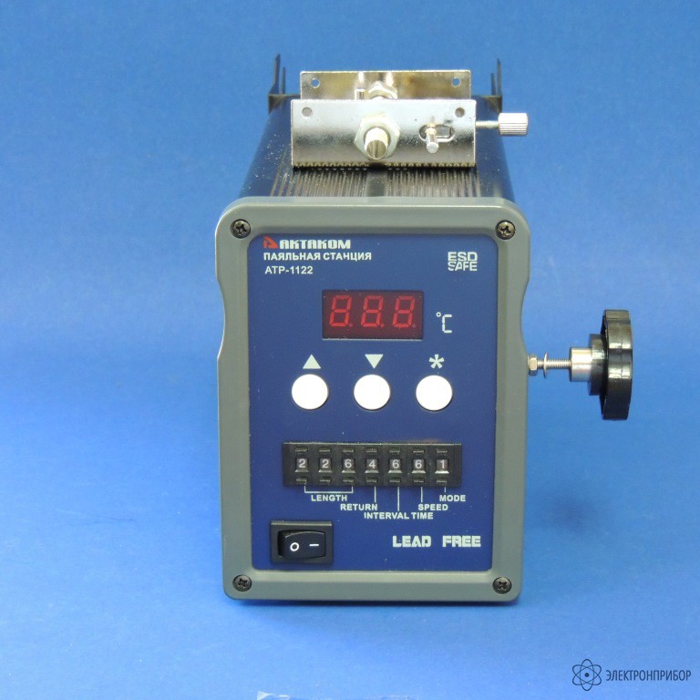 № Наименование Количество 1 Паяльная станция АТР-1122 (блок управления) 1 2 Паяльник 1 3 Подставка для паяльника (держатель) 1 4 Педальный выключатель 1 5 Губка для очистки 1 6 Сетевой шнур (кабель питания) 1 7 Руководство по эксплуатации 1 -
