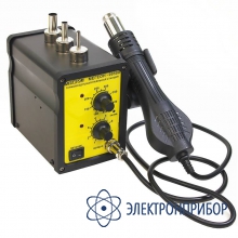 Параметр Значение Напряжение питания станции ~ 220В 50Гц Потребляемая мощность ≤ 470 Вт Размеры станция / фен 170х150х100 мм / Ø57х280 мм Термофен Напряжение питания ~ 220 В Мощность 450 Вт Диапазон температуры 100 … 500°С Тип нагревательного элемента Металлокерамика Сопротивление заземления ≤ 2 Ом Нагнетатель Напряжение питания 24 В Мощность 8 Вт Производительность до 120 л/мин Условия эксплуатации Температура: 5 … 50 °С Влажность: не более 60% Условия транспортировки и хранения Температура: -20 … 60 °С Влажность: не более 80% без выпадения конденсата Вес 1,58 кг -