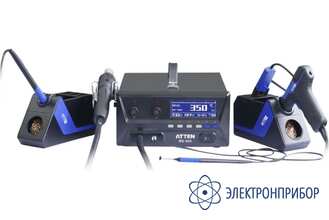Параметр Значение Сетевое напряжение 230 В 50 Гц Максимальная мощность 900 Вт Термовоздушная станция Мощность 550 Вт Диапазон температур 150 - 500 °C Воздушный поток 23 л/мин Шум менее 52 дБ Температурная стабильность ±5 °C Паяльная станция Мощность 130 Вт Диапазон температур 150 - 500 °C Температура в "спящем" режиме 200 °C "Спящий" режим 1 - 120 минут Температурная стабильность ±2 °C Ремонтная станция Мощность 150 Вт Диапазон температур 300 - 500 °C Температура в "спящем" режиме 300 °C "Спящий" режим 1 - 120 минут Температурная стабильность ±2°C Термопинцет Мощность 100 Вт Диапазон температур 150 - 500 °C Температура в "спящем" режиме 200 °C "Спящий" режим 1 - 120 минут Температурная стабильность ±2 °C -