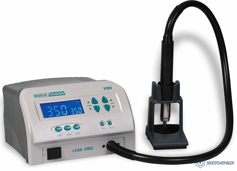 Устройство Quick-856AD предназначено для нагрева горячего воздуха в замкнутом или открытом объеме для монтажа микросхем, чувствительных к стабильности температуры пайки.