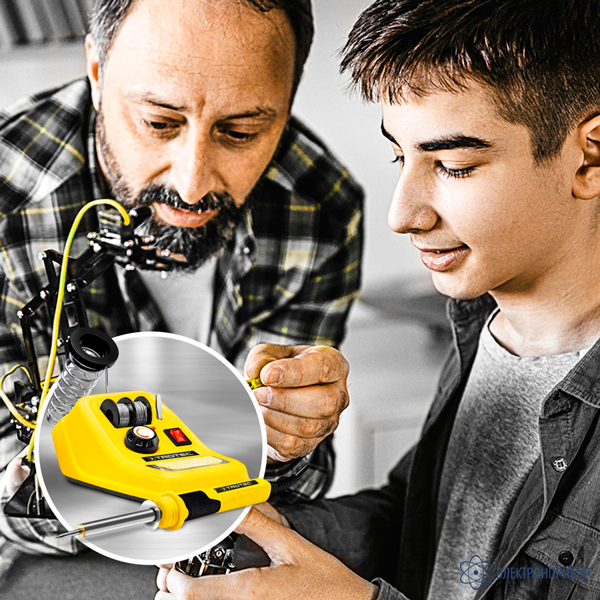 Универсальная паяльная станция Trotec PSIS 11-230 V — универсальное устройство для точной мягкой пайки с контролируемой температурой. Требуется ли вам паяльная станция для пайки или распайки конденсаторов, резисторов и транзисторов на электронных компонентах или для сборки печатных плат, для надежной пайки кабелей и проводов или для соединения филигранных компонентов и стеклянных элементов в области моделирования или искусства Тиффани из стекла? – паяльная станция Trotec PSIS 11-230 V мощностью 48 Вт всегда обеспечивает постоянную рабочую температуру для этих и других областей применения в диапазоне температур 150 – 500 °C.