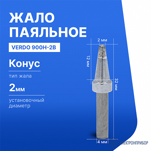 VERDO 900H-2B — коническое паяльное жало, предназначенное для индукционных паяльных станций. Обеспечивает стабильную температуру и быстрое прогревание даже при интенсивной работе.