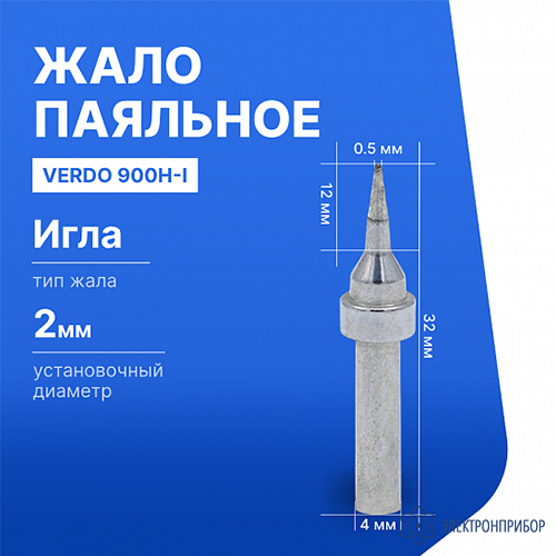 VERDO 900H-I — паяльное жало, предназначенное для индукционных паяльных станций. Очень тонкий острый наконечник жала идеально подходит для пайки миниатюрных деталей и контактных площадок. Жало используется для максимально точной пайки, монтажа микроскопических SMD-компонентов, выполнения тонкой разводки и работы в ограниченном пространстве.