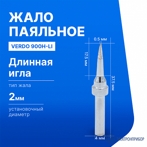 VERDO 900H-LI — удлиненное паяльное жало, предназначенное для индукционных паяльных станций. Очень тонкий острый наконечник жала идеально подходит для пайки миниатюрных деталей и контактных площадок. Жало используется для максимально точной пайки, монтажа микроскопических SMD-компонентов, выполнения тонкой разводки и работы в ограниченном пространстве.