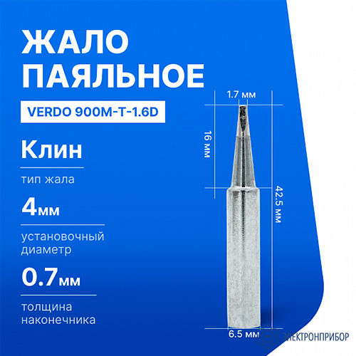 Технические характеристики жала паяльного VERDO 900M-T-1.6D: