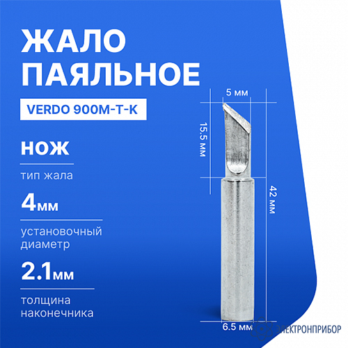 VERDO 900M-T-K представляет собой высококачественную насадку для паяльных станций с рабочей длиной 5,0 мм. Это универсальная модель, относящаяся к типу K (нож), которая широко применяется в профессиональной сфере для различных задач по пайке электронных компонентов.