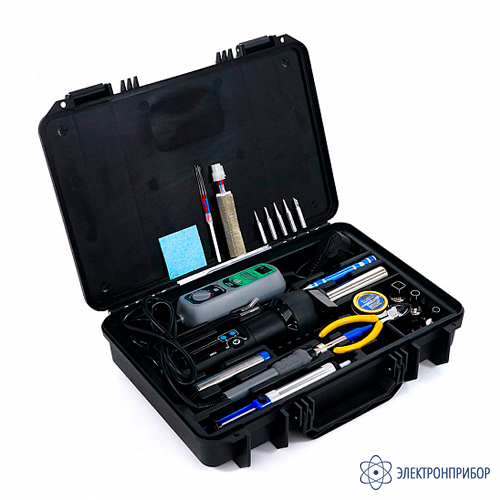 В комплекте предусмотрены два инструмента: паяльник и термофен с цифровым управлением. Оба инструмента оснащены системой PID-регулировки температуры с точностью ±2°C, что обеспечивает стабильный и точный контроль температурных режимов. Благодаря быстрому нагреву, инструменты готовы к работе в кратчайшие сроки.