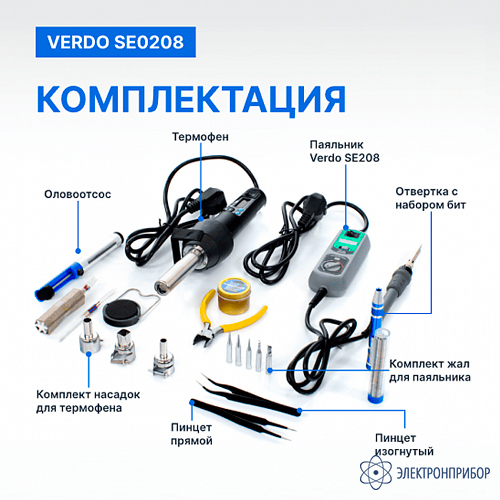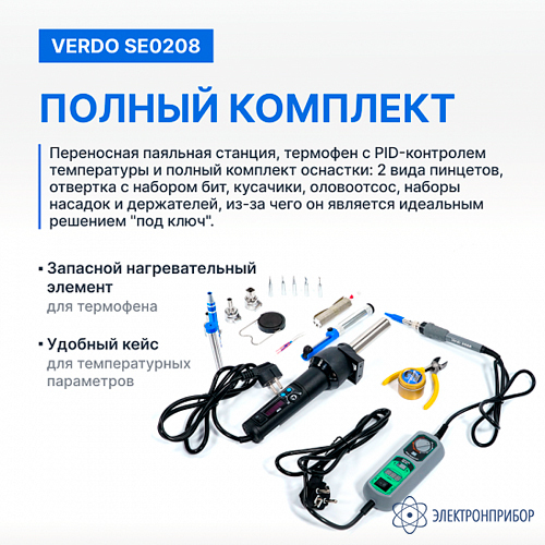Паяльный набор VERDO SE0208 представляет собой многофункциональное оборудование, предназначенное для выполнения широкого спектра задач в области электроники. Данный комплект подходит для монтажа микрочипов, демонтажа и термоусадки. Эффективен для работы с различными типами компонентов, такими как SOIC, CHIP, QFP, PLCC, BGA и SMD.