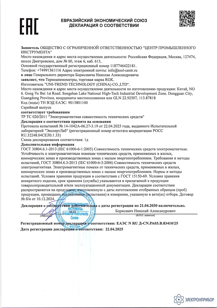 Технические характеристики термоанемометра RGK AM-30: