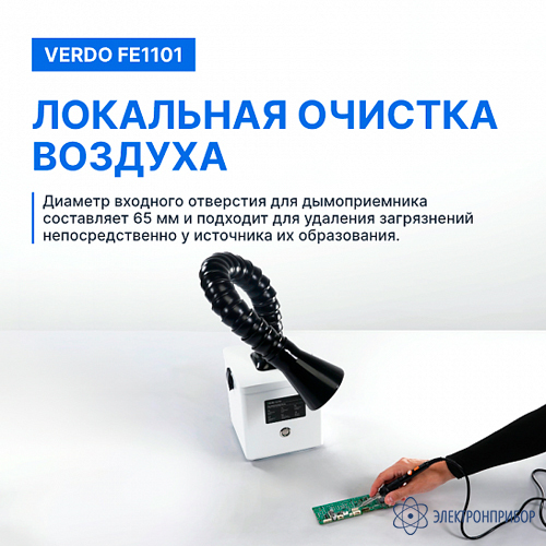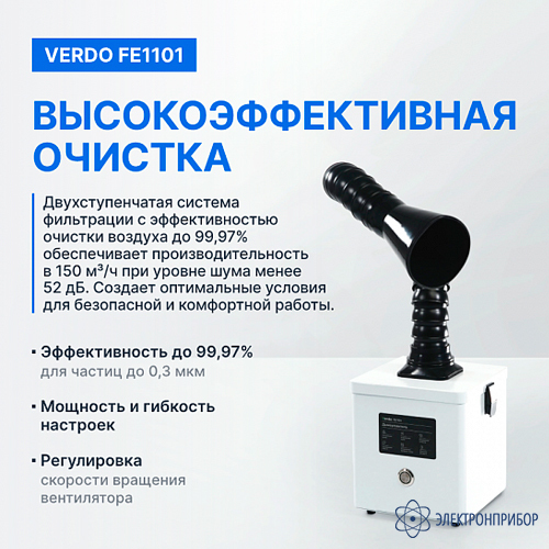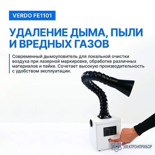 Дымоуловитель VERDO FE1101 — современное решение для высокоэффективной фильтрации воздуха в процессе лазерной маркировки, гравировки металлов, стекла и других материалов, сопровождающихся образованием мелкодисперсной пыли, а также для удаления вредных паров, дыма и частиц при пайке. Модель оснащена мощным двигателем 50 Вт и обеспечивает высокую производительность воздушного потока до 150 м3/ч. Отличается малым уровнем шума — менее 52 дБ, что позволяет использовать его в лабораторных, мастерских и производственных условиях.