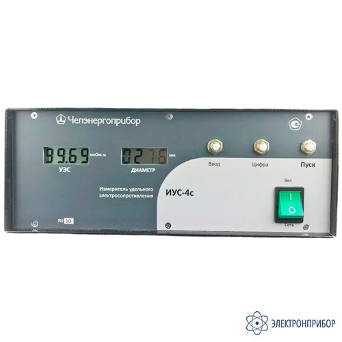 Для измерения УЭС графитированных электродов в составе измерительного стенда может быть использован стационарный вариант ИУС-4с. Здесь используется больший измерительный ток, за счет чего достигается большая точность измерений. Этот прибор снабжен интерфейсом RS-232 для связи с компьютером. Питание ИУС-4с от сети 220 В, 50 Гц.