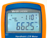 В портативных LCR-метрах VERDO LH2300 имеется режим допуска, предназначенный для сортировки компонентов по выбранному пользователем первичному измеряемому параметру. В этом режиме первичный дисплей показывает измеренное значение компонента, а вторичный дисплей показывает % отличия измеренного значения от заданного опорного значения. Для сортировки можно выбрать следующие допуски: 1%, 5%, 10%, 20%. Соответствие допуску дополнительно подтверждается звуковым сигналом прибора.