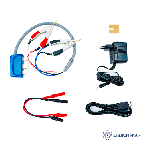 В комплекте с LCR-метрами идет несколько удобных пробников для измерения компонентов: щуп-адаптер Кельвина и пинцет-адаптер для SMD-компонентов, подключаемых по 5-проводной схеме (4-проводная схема измерения плюс экран) в измерительный порт прибора, а также 2-проводный кабель с крокодилами для подключения к мощным компонентам. Это позволяет достигнуть высокой точности измерений штатными средствами без дополнительных опциональных приспособлений.