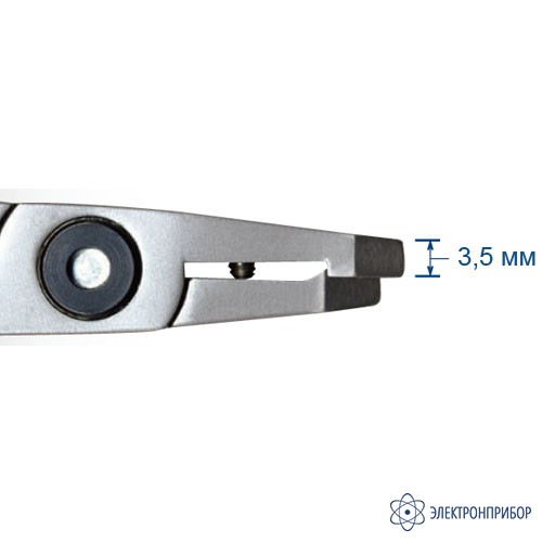 Торцевые кусачки для работы с компонентами, поверхностного монтажа и радиомонтажных работ. Режущие кромки расположены со сдвигом. Длина подрезки (сдвига) может быть заказана в пределах от 0,5 мм до 3,0 мм. Тип среза: абсолютно плоский срез (Razor Flush). Угол подрезки 45º. Режущая способность (мягкий медный провод) 0,20 мм-0,64 мм. Уникальная система против затупления. Встроенный защитный винт для предохранения врезания режущей кромки в опорную стойку. Антистатические нескользящие ручки. Стандартный размер ручек: длина 115 мм. Конструкция: система соединения состоит из двух элементов, соединенных между собой блокирующим винтом с мелкой резьбой, гайкой и прецизионно обработанными на станке опорными шайбами. Исполнение: высоколегированная сталь. Производство США.