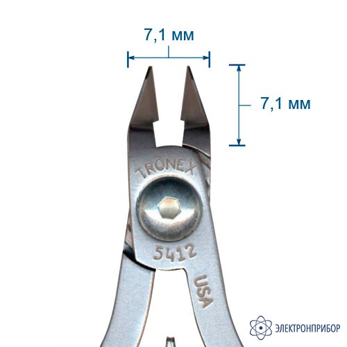 Бокорезы с миниатюрной конической головкой (7,1 мм х 7,1 мм). Тип среза: абсолютно плоский срез (Razor Flush). Длина режущей кромки 7,1 мм. Угол 16º. Режущая способность (мягкий медный провод) 0,1 мм-0,8 мм. Антистатические нескользящие ручки. Стандартный размер ручек: длина 115 мм. Конструкция: система соединения состоит из двух элементов, соединенных между собой блокирующим винтом с мелкой резьбой, гайкой и прецизионно обработанными на станке опорными шайбами. Исполнение: высоколегированная сталь. Производство США.
