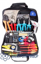Набор инструментов электрика универсальный НЭУ-М2-1® предназначен для производства электромонтажных работ на электроустановках и в электрических шкафах напряжением до 1000В. Набор укомплектован диэлектрическим инструментом, мультиметром, сигнализатором опасных напряжений, пресс-клещами, а также аккумуляторной отверткой с набором бит и сверл.