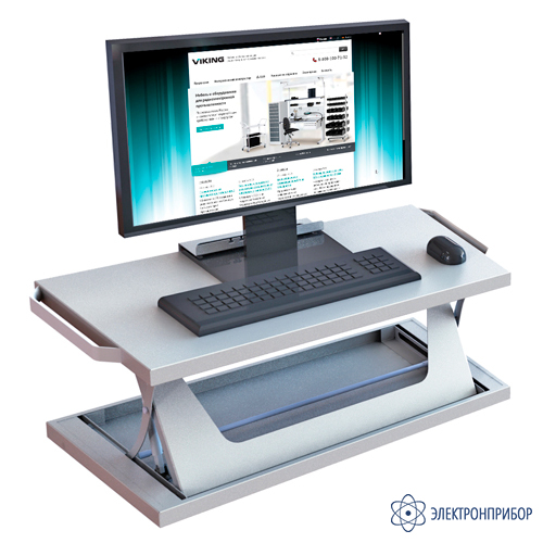Складная настольная система, позволяющая организовать рабочее место (730 х 388 мм) в двух положениях – сидя или стоя и установить компьютер, монитор или оборудование на требуемой высоте.