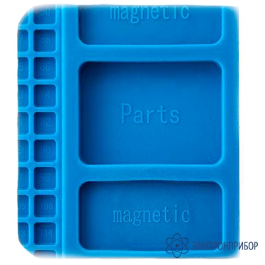 Монтажный коврик МЕГЕОН 02816 предназначен для предотвращения повреждения электро и радиоизделий статитеческим электричеством. Продуманная конструкция со множеством пронумерованных лотков позволит разместить большое количество компонентов. Дополнительно в поверхность были установлены 4 магнита для надёжной фиксации металлосодержащий элементов и комплектующих. Дополнительно имеются 3 лотка с крышками. В качестве материала был использован термостойкий силикон. Изделие одинаково может использоваться в профессиональной, научной и любительской областях.