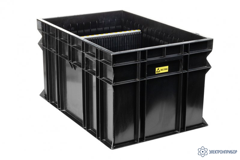 Тара антистатическая для печатных плат с ручками для транспортировки Дополнительно оснащается перегородками. Цвет черный. Возможна установка контейнеров друг на друга.