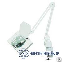 Бестеневой светильник АТР-6037 с линзой (190*157 мм), увеличение 3D с защитным пластиковым корзырьком от бликов и пыли, две U-образные люминесцентные лампы по 9 Вт, 220-240 В. Крепление к столу струбциной. Пантографический механизм. Цвет: белый.