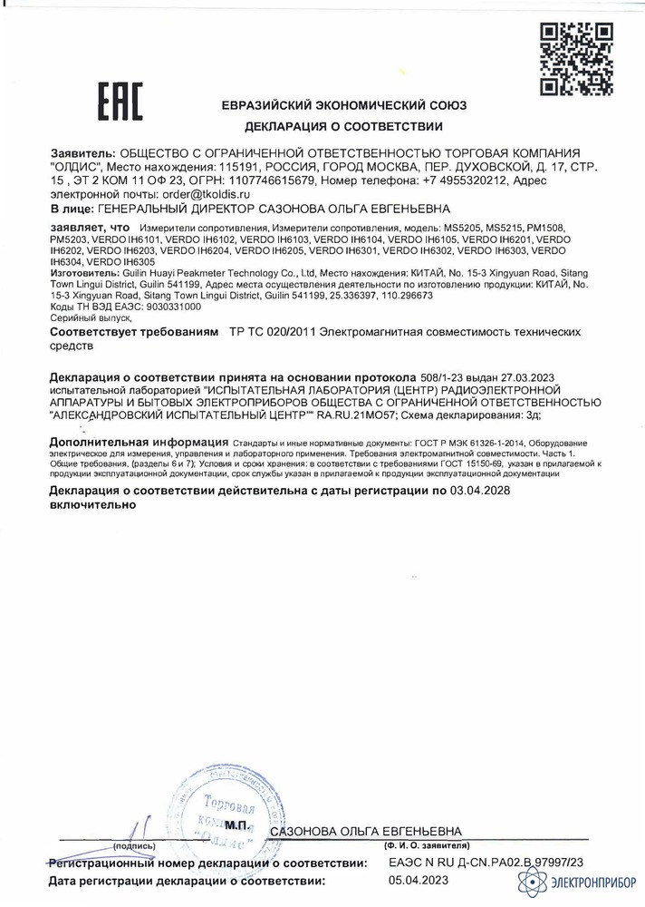 VERDO IH6101 — измеритель сопротивления изоляции до 1000В