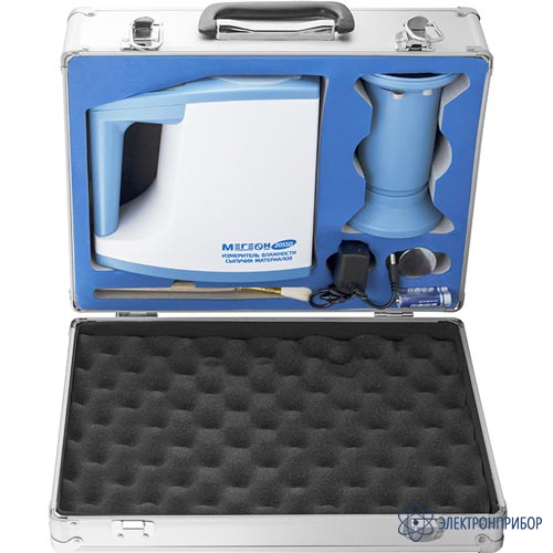 № Наименование Количество 1 Влагомер сыпучих материалов МЕГЕОН 20550 1 2 Мерный цилиндр 1 3 Воронка 1 4 Кисточка 1 5 Калибровочная гиря 200 г 1 6 Источник питания 220В на 6В 1А 1 7 Батарея 1,5 В тип R6 (AA) 4 8 Кейс для переноски и хранения 1 9 Руководство по эксплуатации 1 10 Гарантийный талон 1 -