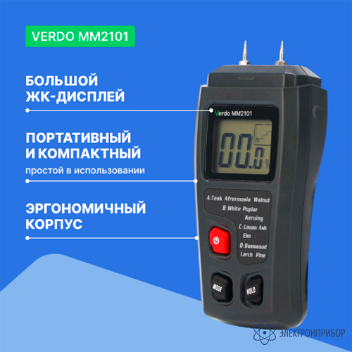 Особенности влагомера древесины (4 шкалы, около 100 пород) VERDO MM2101: