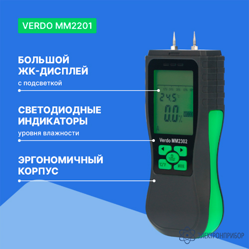 VERDO MM2302 — влагомер древесины (8 шкал) и строительных материалов
