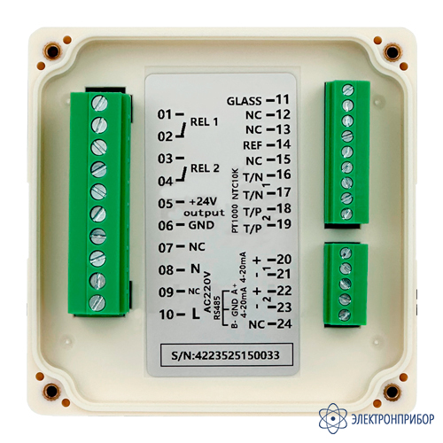 Параметр Значение Тип измерения pH и/или ОВП Диапазон измерения PH 0,00 ~ 14,00 pH Диапазон измерений ОВП -1999~1999 мВ Погрешность 0.1 рH, 0,1 мВ Рабочая среда 0-50 °С; не более 85 % Дисплей 3,5-битный ЖК, с подсветкой Ток 4-20 мА Материал корпуса пластик Автоматическая компенсация температуры (АТС) есть Автоматическая термокомпенсация 0 - 100 °C Разрешение 0,01 pH Длина кабеля 10 м (также возможны варианты длины 5-30 м) Класс защиты IP65 Размеры 96 х 96 х 132 мм Выходы RS-485 Modbus/RTU и 4-20 mA Питание DC 24 В выходной и AC 220V входной ток -
