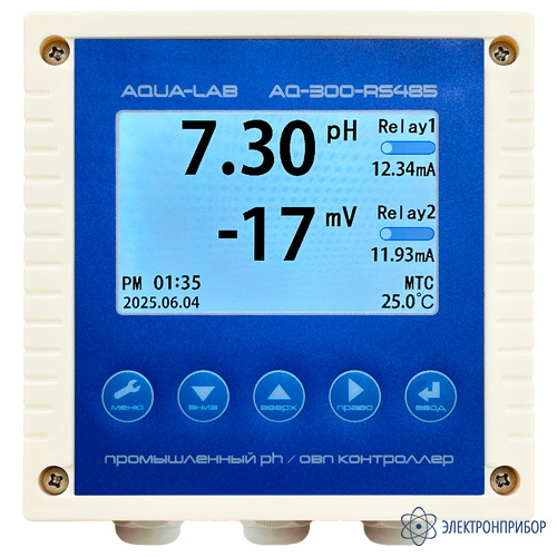 Описание промышленного pH, ORP контроллера (интерфейс RS485 Modbus RTU) AQUA-LAB AQ-300-RS-485: