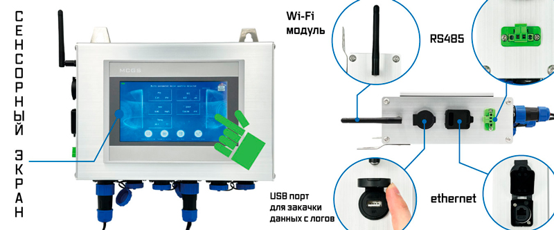 - монитор с сенсорным экраном, через который легко откалибровать датчики и получить актуальные данные с датчиков в режиме онлайн;
