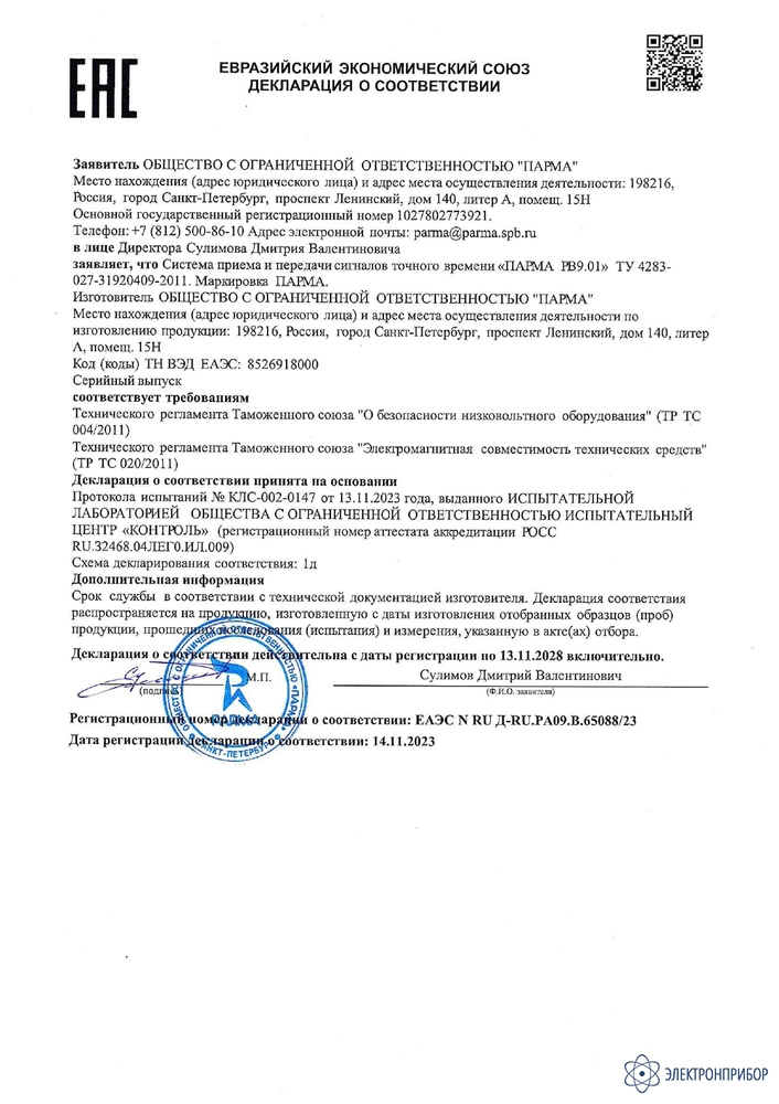 Парма РВ 9.01 — система приема и передачи сигналов точного времени GPS