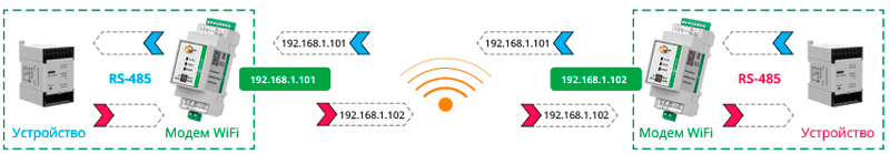 - Режим Access Point (AP) - для построения Канала связи "радиоудлинитель RS-порта" без внешней точки доступа.