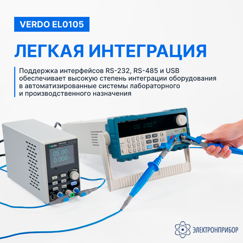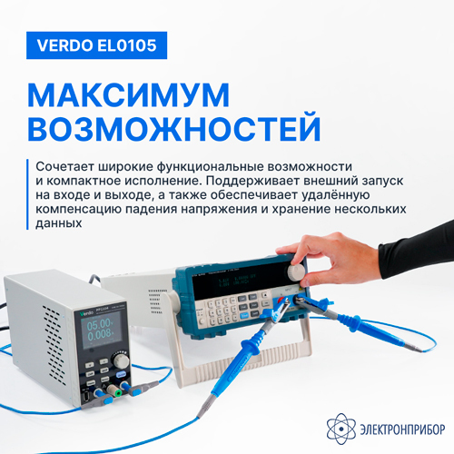 Преимущества нагрузки электронной, 300 Вт, 0-30 А, 0-500 В VERDO EL0105:
