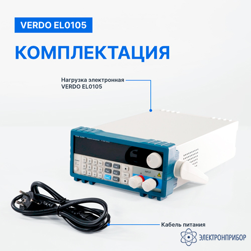 № Наименование Количество 1 Нагрузка электронная VERDO EL0105 1 2 Кабель питания 1 3 Руководство по эксплуатации 1 -