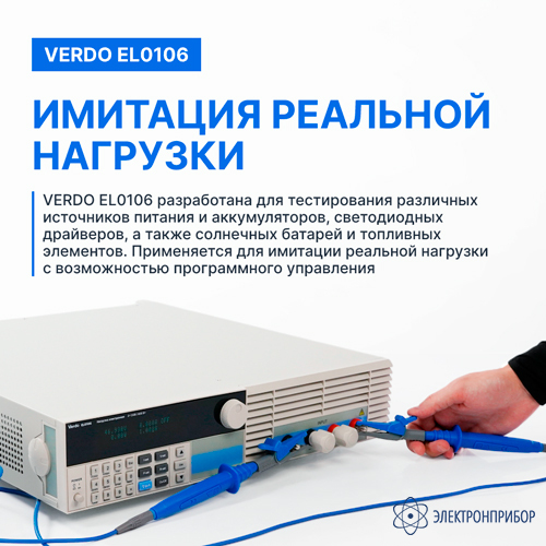 VERDO EL0106 представляет собой электронную нагрузку с мощностью 600 Вт, находит широкое применение для тестирования зарядных устройств, аккумуляторов (от сотовых телефонов до транспортных средств), источников питания, светодиодных драйверов, солнечных батарей и топливных элементов и др. приложений в области измерительной техники и производственных испытаний.