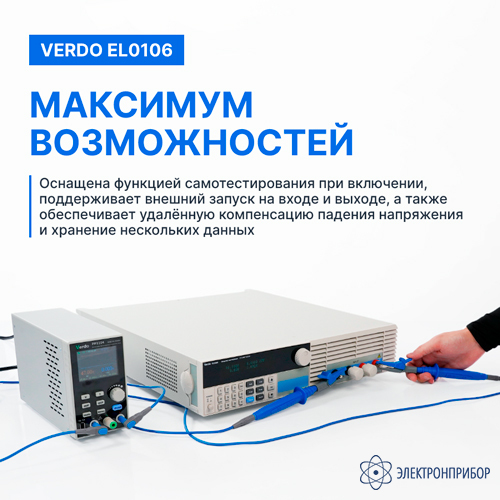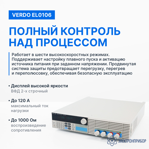 Преимущества нагрузки электронной, 600 Вт, 0-120 А, 0-150 В VERDO EL0106: