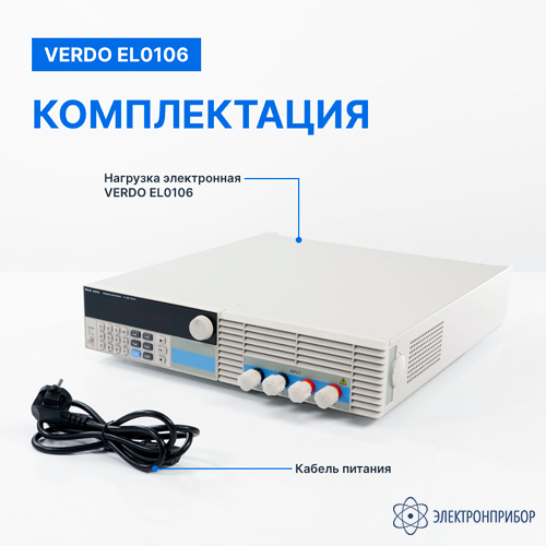 № Наименование Количество 1 Нагрузка электронная VERDO EL0106 1 2 Кабель питания 1 3 Руководство по эксплуатации 1 -