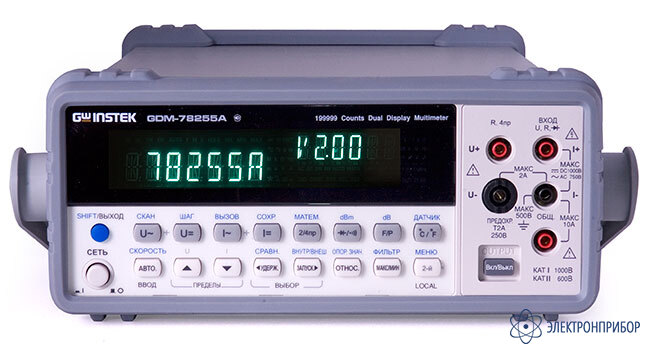 Вольтметр цифровой универсальный. Динамический диапазон 199999. Пределы измерений: 100 мВ - 1000 В, 10 мА - 10 А, 100 Ом - 100 МОм, диапазон частот 10 Гц - 800 кГц, 0 - 300 °С.
